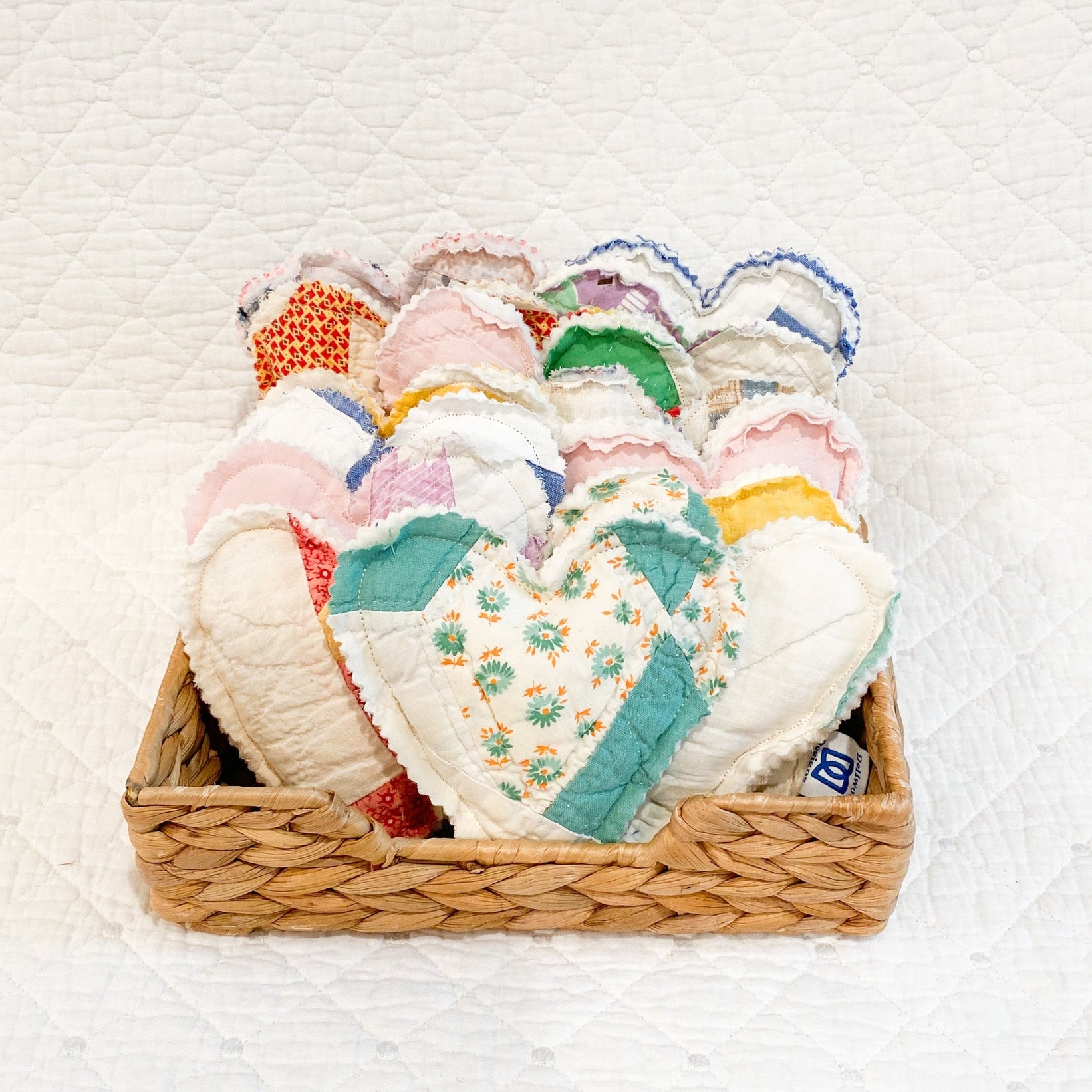 These charming heart-shaped lavender sachets are handmade in our studio using genuine antique quilts and filled with 100% natural lavender blooms—no additives or synthetic fragrances. Each sachet measures approximately 5” x 5” and offers a unique blend of vintage texture and calming scent. Perfect for gifting, home fragrance, or linen storage, they make a thoughtful addition to any shop’s selection of handmade, vintage-inspired goods.