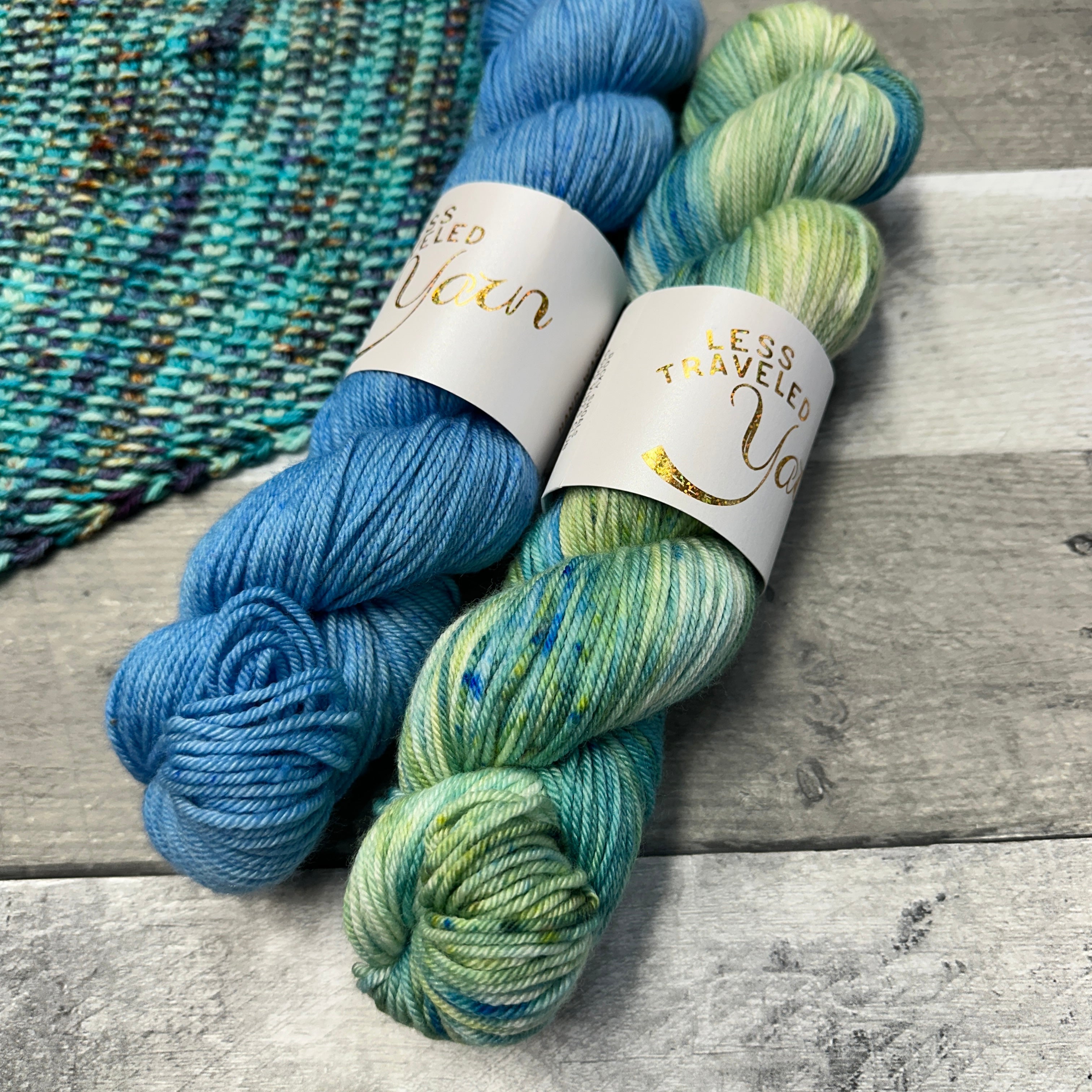 Each bundle includes 1 sk each of 2 colors DK weight yarn (most bundles are Tosh DK; 1 bundle is Paloma DK by Less Traveled Yarn). The pattern can be purchased on Ravelry here. Requires size K (6.5mm) tunisian crochet hook.