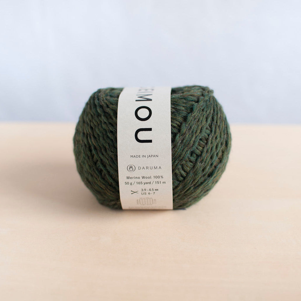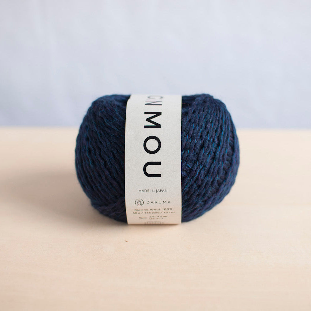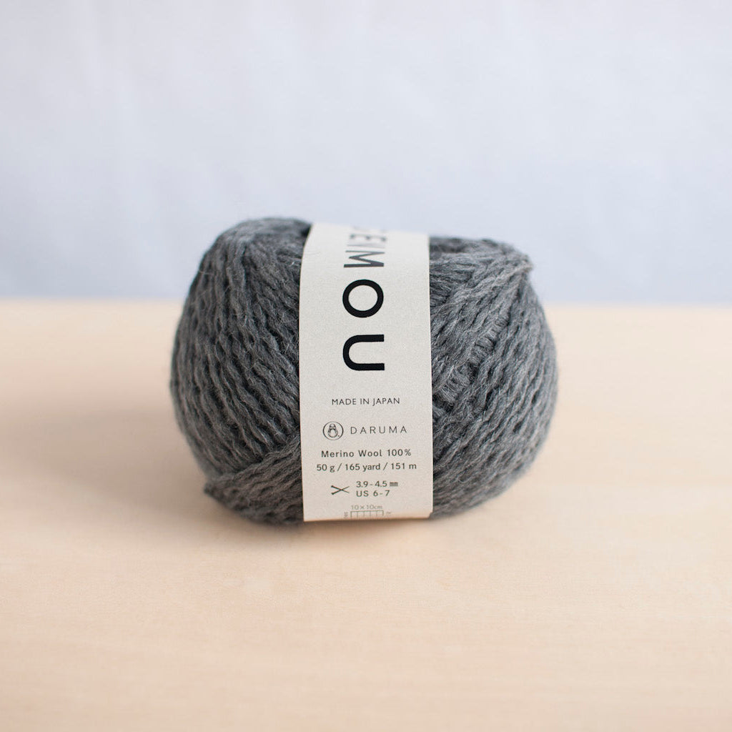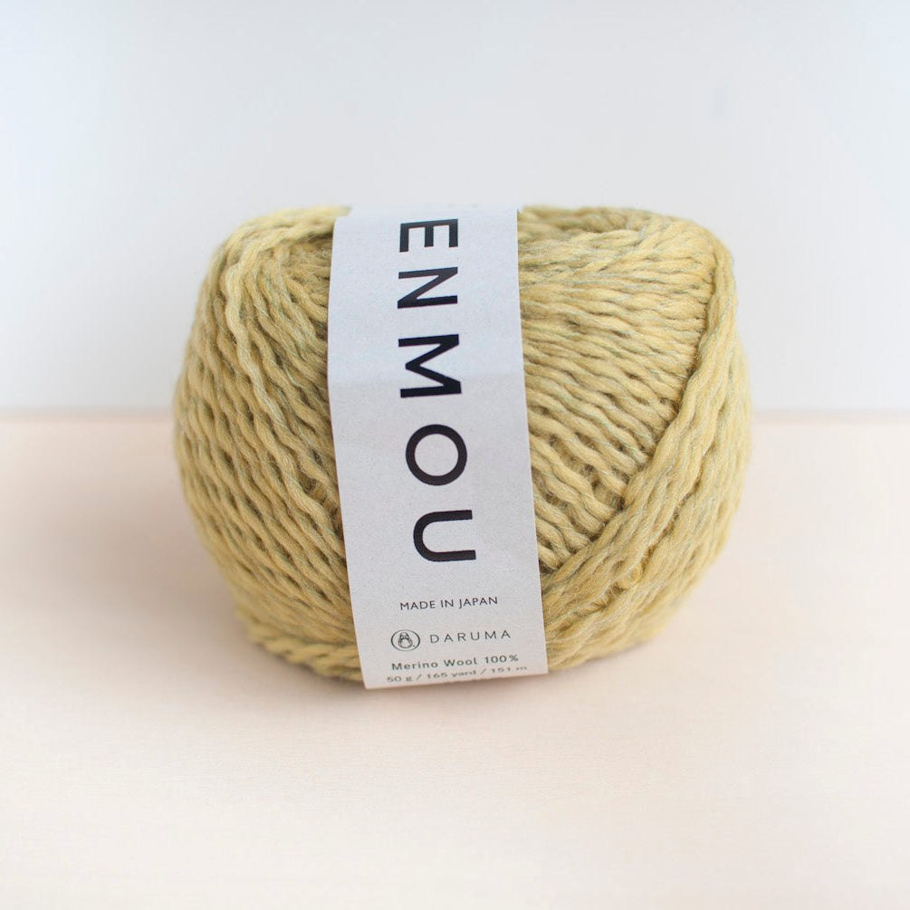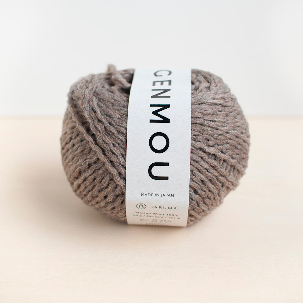 Twisted loosely, GENMOU is a 3-ply 100% merino wool yarn with one ply of untwisted, carded wool while the other two plies are thin, tightly-spun threads that hold the wool together. This unique construction produces an airy and extremely light yarn, while at the same time making it wavy resulting in a very smooth knit fabric. It is DK weight, warm, and great for wraps, garments, and accessories. GENMOU is available in a palette that mixes bright, poppy shades and soft, calm neutrals.