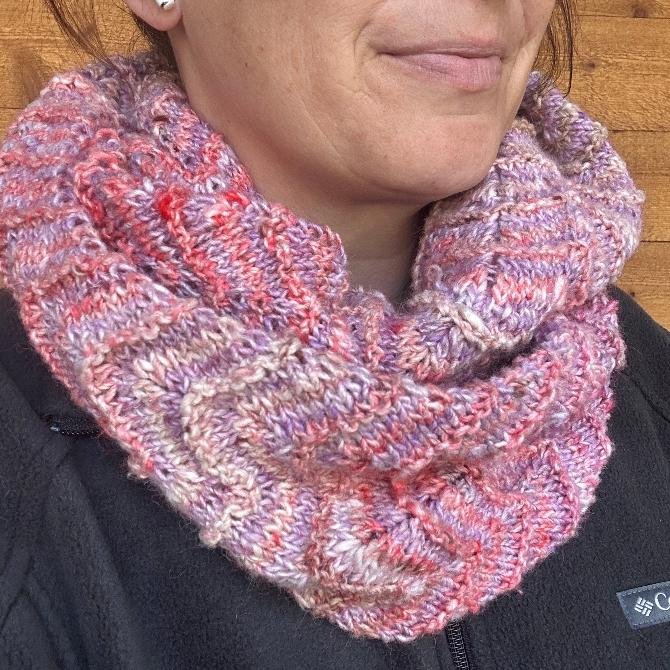 one-of-a-kind handknit sample: twilight's embrace cowl