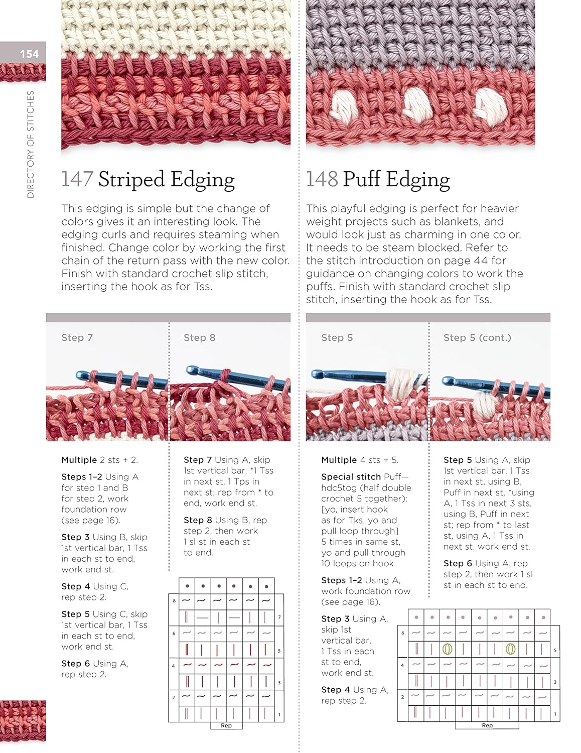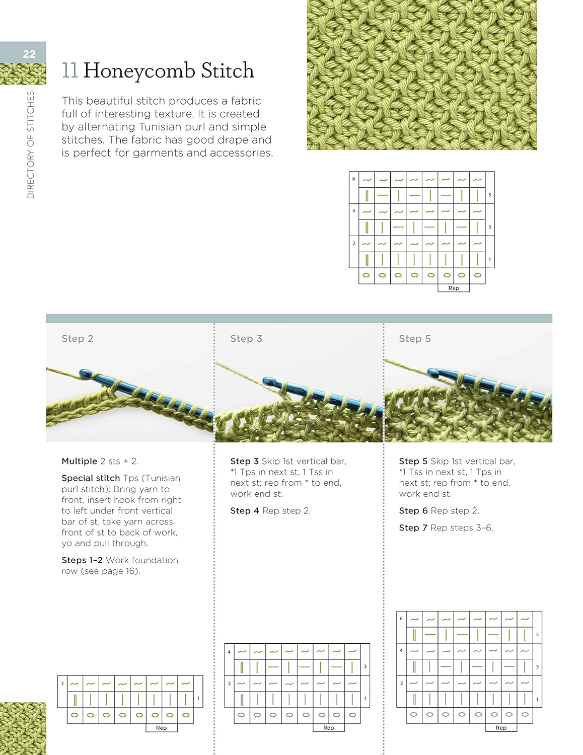 - 150 stitches step-by-step, organized into themed sections, with tutorials for achieving the most popular and most used Tunisian crochet stitches