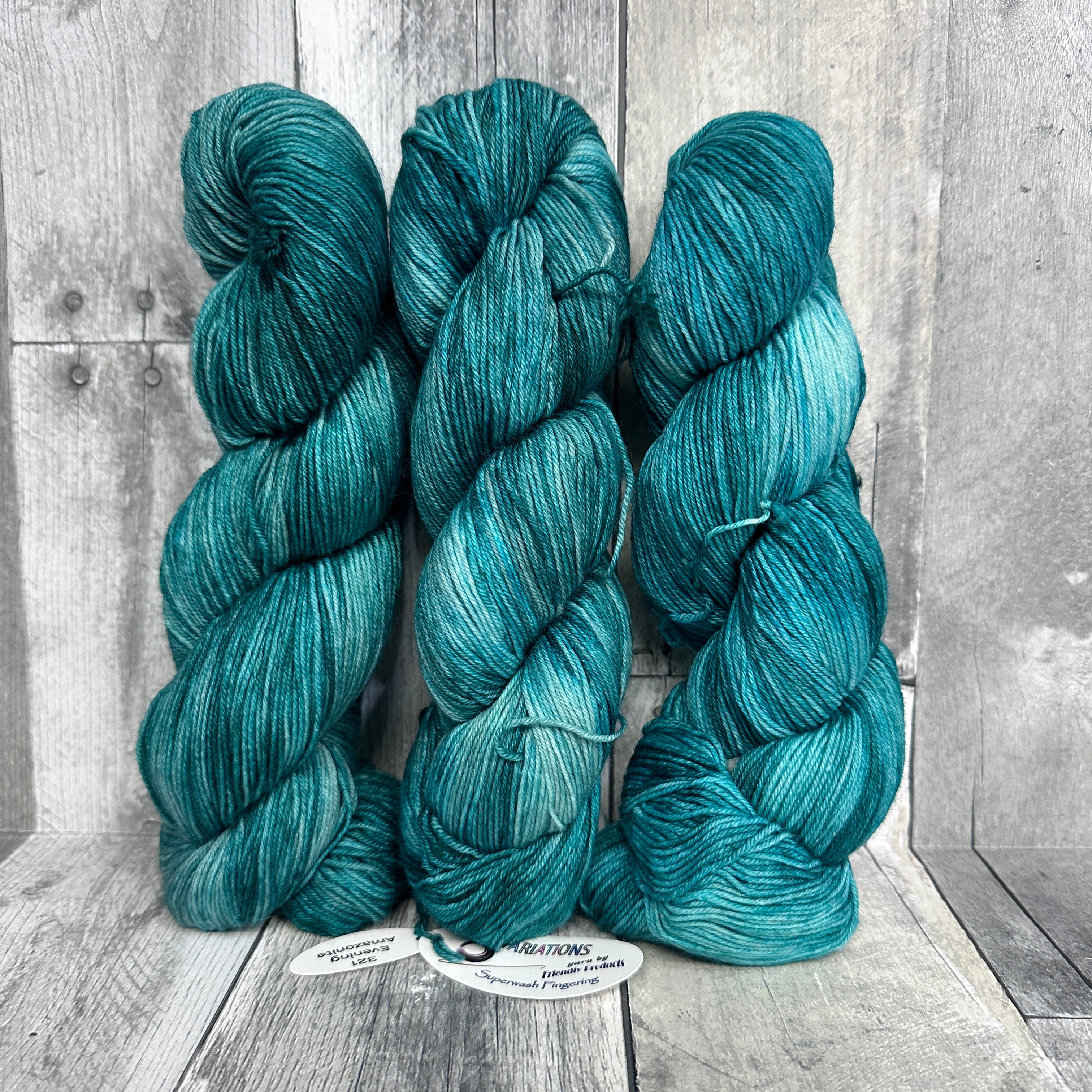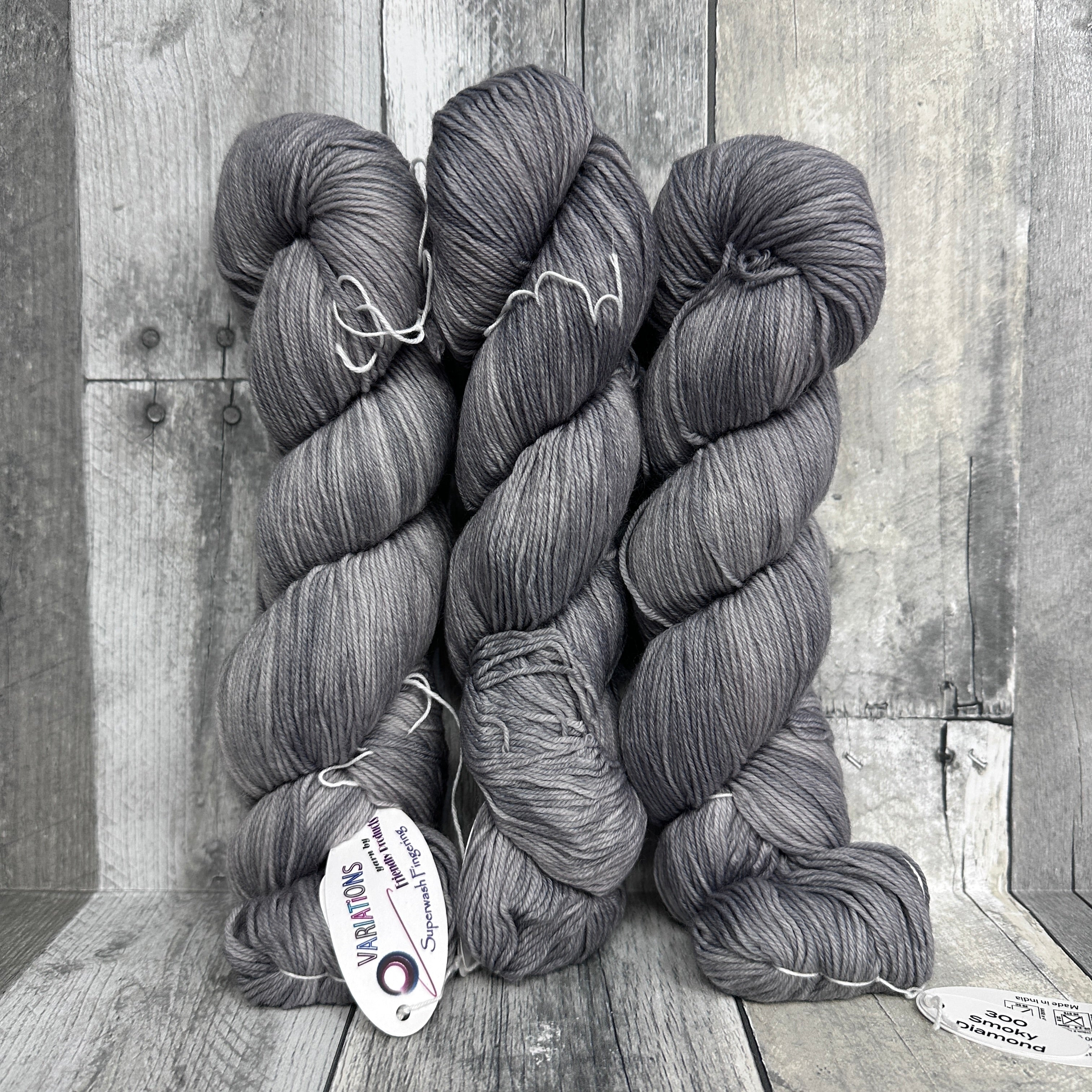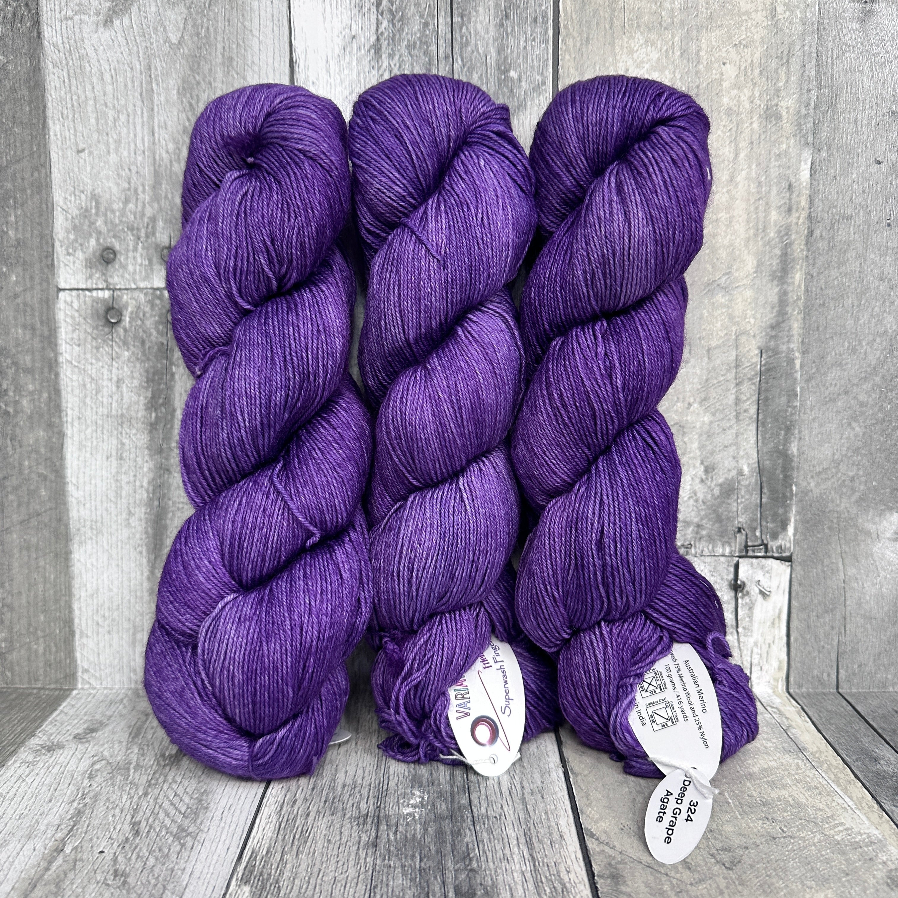 Variations Fingering from Friendly Products is a solid color, plied superwash merino wool and nylon blend fingering weight sock yarn. Australian merino wool, make in India.