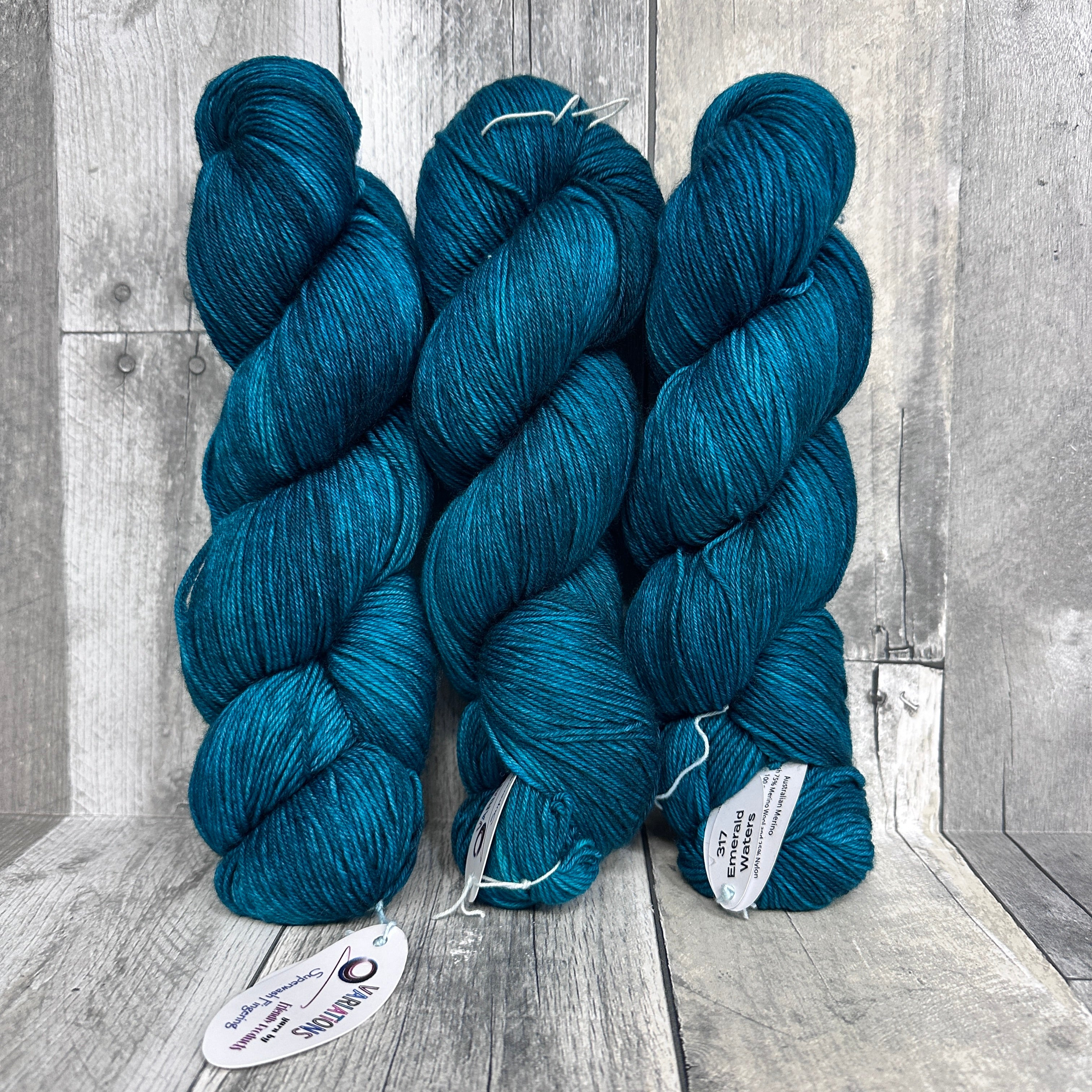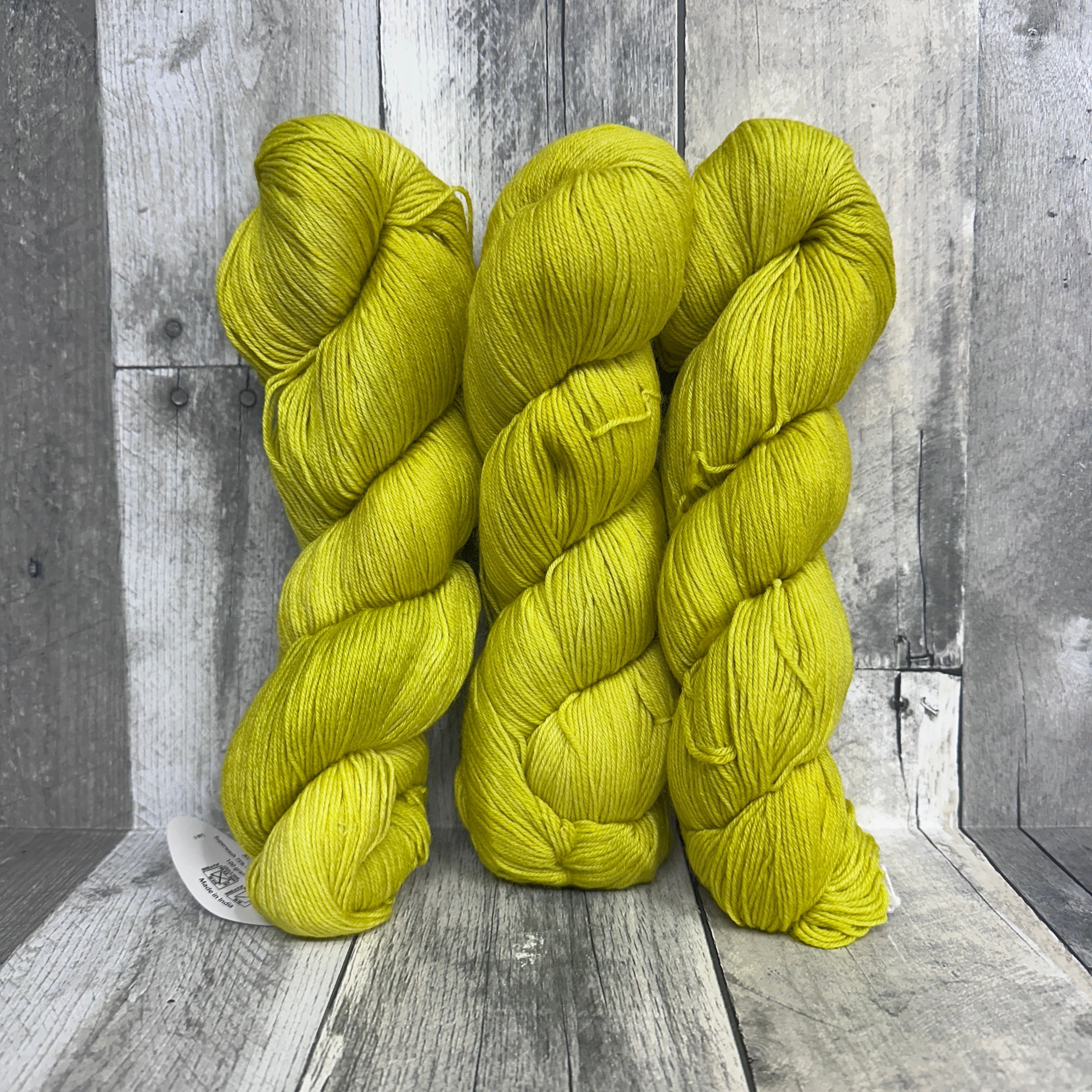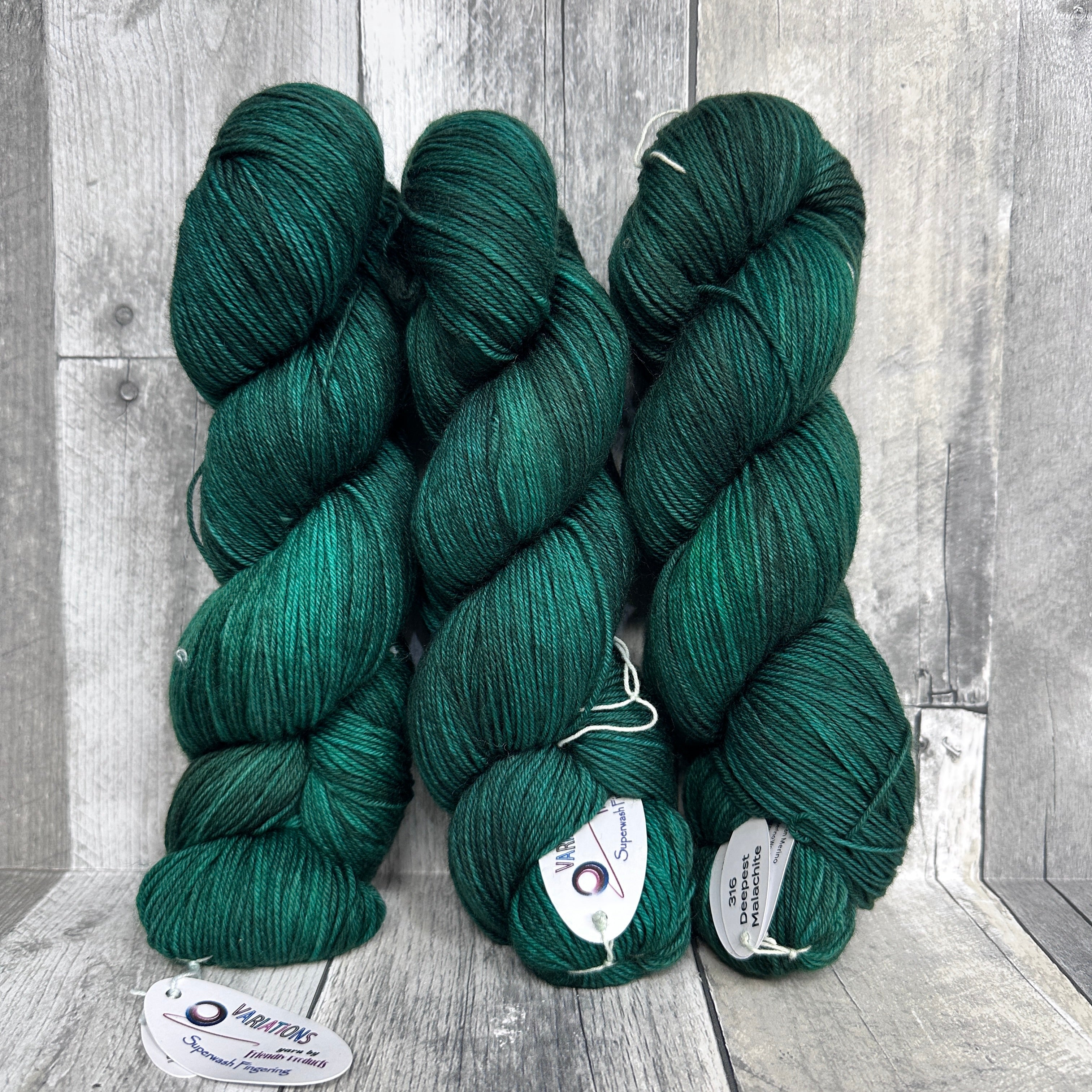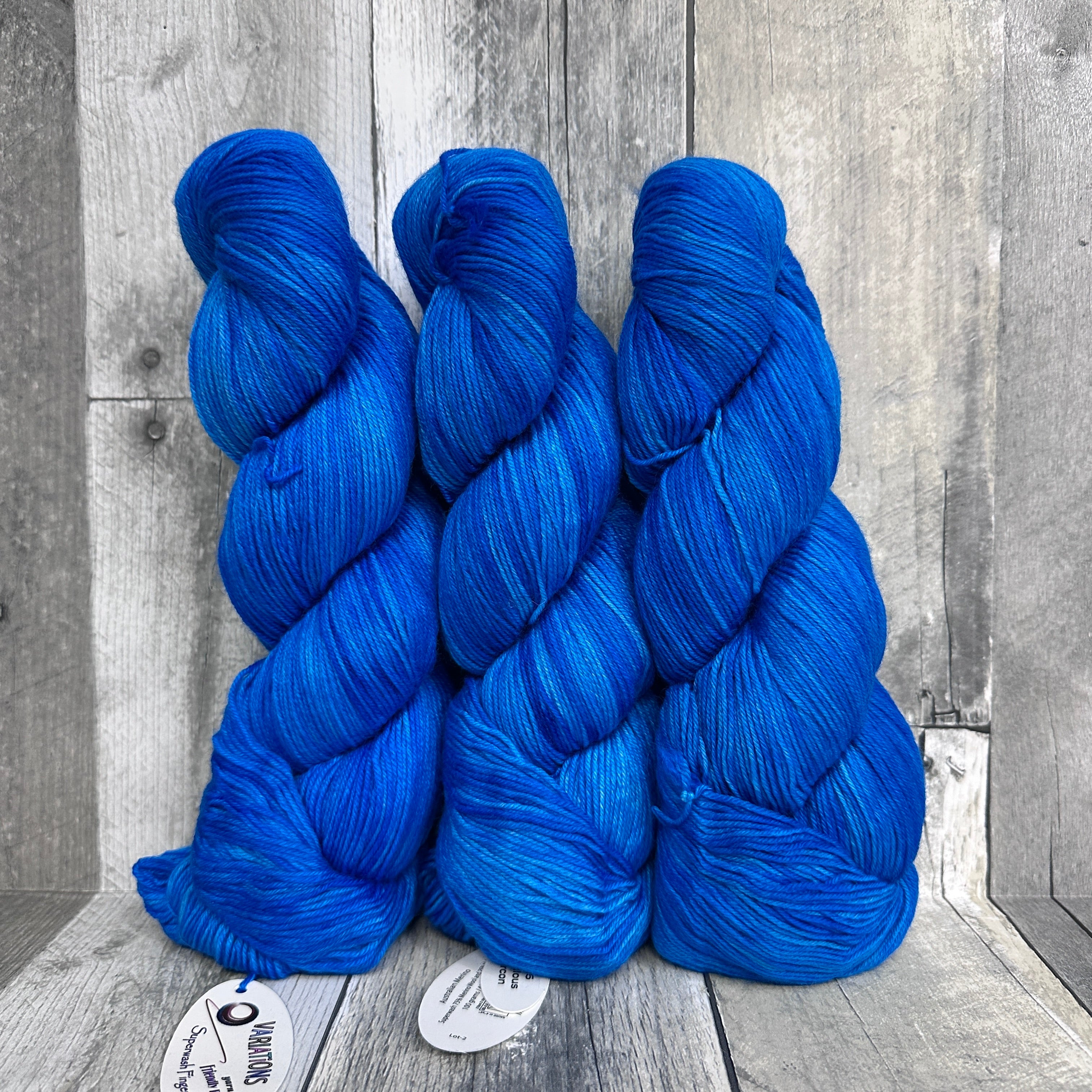 Variations Fingering from Friendly Products is a solid color, plied superwash merino wool and nylon blend fingering weight sock yarn. Australian merino wool, make in India.