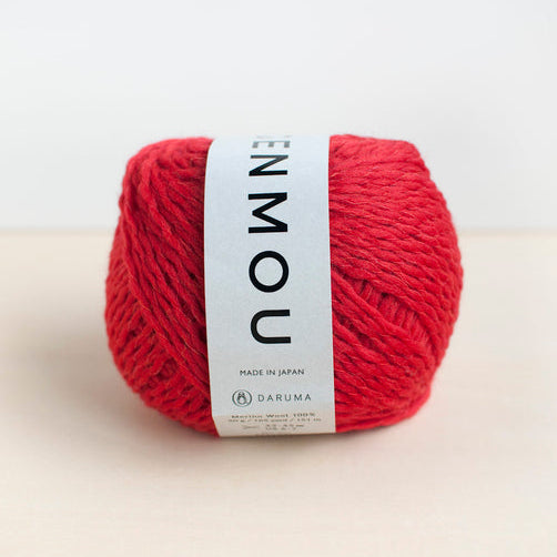 Twisted loosely, GENMOU is a 3-ply 100% merino wool yarn with one ply of untwisted, carded wool while the other two plies are thin, tightly-spun threads that hold the wool together. This unique construction produces an airy and extremely light yarn, while at the same time making it wavy resulting in a very smooth knit fabric. It is DK weight, warm, and great for wraps, garments, and accessories. GENMOU is available in a palette that mixes bright, poppy shades and soft, calm neutrals.