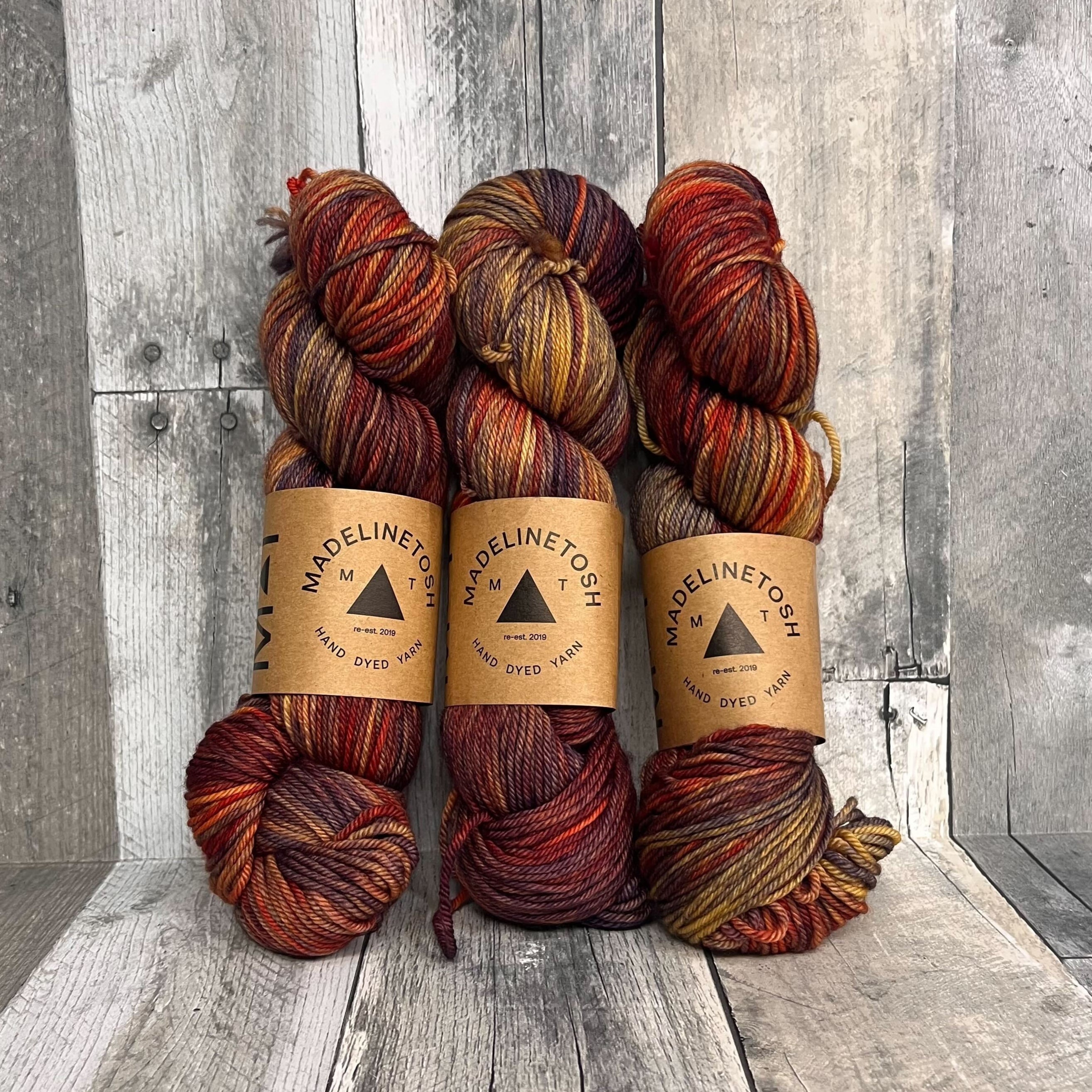 A round, bouncy superwash Merino wool hand-dyed by Madelinetosh in Texas from wool ethically sourced in South Africa.